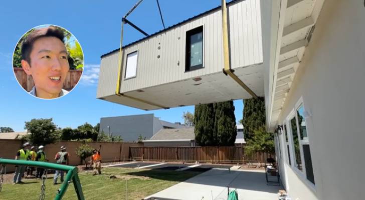 The proud new ADU owner, who identified himself as Owen, spoke to CBS affiliate KPIX about the process, as a crane lifted the ADU over his house to gently place it in his backyard.