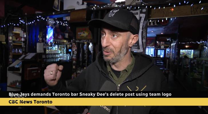 Sneaky Dee’s, a College Street favourite known for its nachos and live music, was contacted by the Blue Jays organization late last week after it shared a social media post featuring the team’s logo.